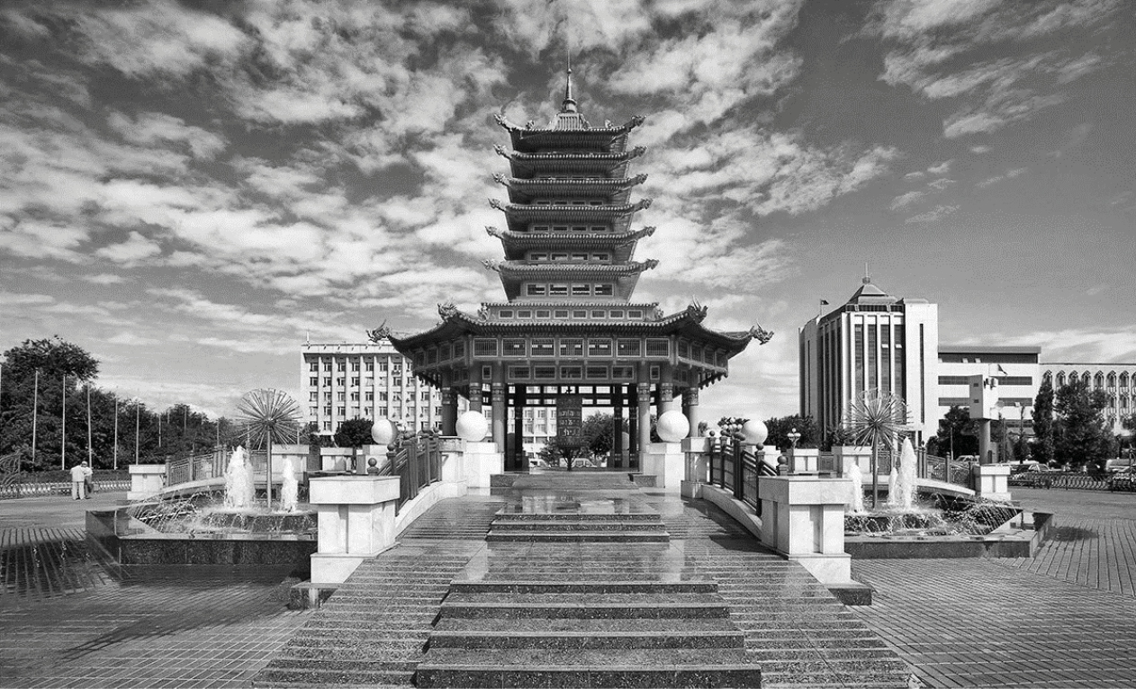 Отдельно следует отметить возросшую тенденцию строительства религиозных объектов. В 2005–2006 гг. происходит очередная реконструкция центральной площади им. В.И. Ленина, на которой между строгими памятниками советской архитектуры устанавливается культовое буддийское сооружение – семиярусная пагода с большим молитвенным барабаном (рис. 8). Западный вход на площадь и соответственно проход к пагоде украшается аркой «Золотые ворота», выполненной в традициях буддийской архитектуры (автор идеи ‒ художник Борисов, архитектор и инженер-строитель Шанхаев 1998 г.). Площадь Ленина, как центральный административный элемент города, служит своего рода «рамкой» для коллажного восприятия пространства, где монументальные здания советского периода соседствуют с современным дизайном построек нашего времени и яркими традиционными элементами религиозных сооружений (рис. 9). Центру города отводится задача репрезентации современного городского образа жизни.