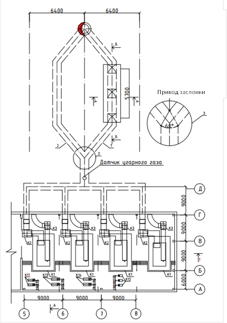 Рис. 1. План котельной с установкой отбора газов