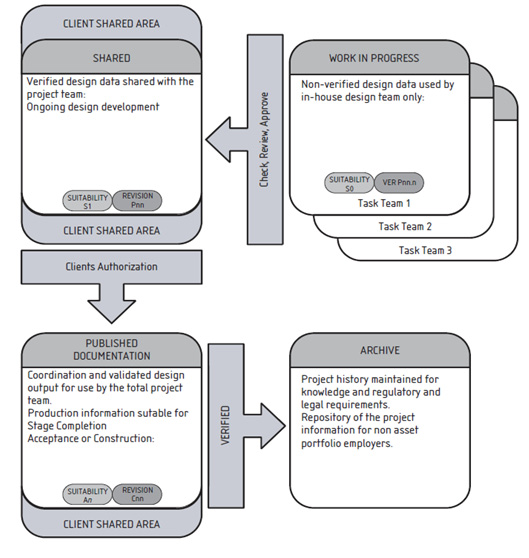 Fig. 1. Definition of the document and data repository structure as part of the Common Data Environment in BS 1192:2007 [5]