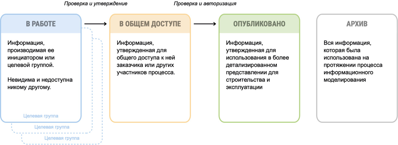 - Применение статусов. Данная методология получила дальнейшее развитие в серии стандартов ISO 19650 [4].