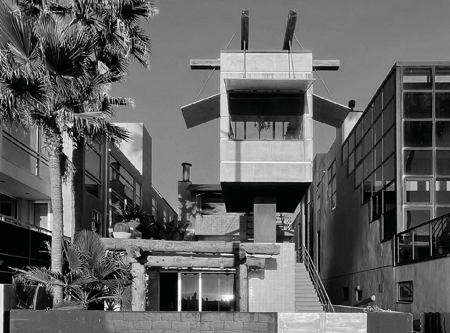 Таким Лос-Анджелес предстал перед Гери в 1960-х гг., поставив перед ним проблему архитектурного метода в городе, в котором отсутствует контекст в его традиционном понимании. Архитектурная традиция Лос-Анджелеса заключалась в ее отсутствии. Испанское миссионерское возрождение, Ар-деко довоенного времени, Фрэнк Ллойд Райт, модернистские постройки Рудольфа Шиндлера и Ричарда Нойтры, коммерческая реклама заправок и придорожные кафе гугги-архитектуры – футуристичного калифорнийского изобретения – все это сосуществует в городе, где модернизм уживается с Маленьким Токио и другими азиатскими соседствами, а эклектика является неизбежной. Именно в таком окружении Гери нужно было найти ключ к своей архитектуре, которая была бы вдохновлена этим противоречивым контекстом. И именно Бэнхэм обращает внимание на Фрэнка Гери, все еще маргинального архитектора на момент написания книги, рассказывая на ее страницах о Студии Данцингера. Небольшая постройка привлекает внимание архитектурного критика, заметившего архитектурную новизну этого минималистского дома. С данного объекта начинается история архитектора Фрэнка Гери, который был в равной мере сформирован как урбанистическим контекстом, так и художественной средой Лос-Анджелеса, заслуживающей отдельного описания.