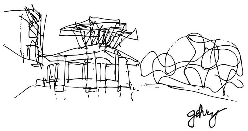 Вспоминая этот период, Гери часто впоследствии утверждал, что именно от художников он «научился находить вдохновение вокруг себя и ценить повседневные вещи» [4]. Он выбрал такой круг общения, потому что искусство всегда привлекало его. Когда Гери обучался в университете, он пытался объединить студентов архитекторов и художников в проектах, привнести момент искусства в архитектуру, поскольку верил, что архитектура ‒ это искусство, и он старался практиковать ее именно так [5]. «Мои любимые художники — Кен Прайс, Роберт Раушенберг, Эллсворт Келли, Эд Мозес и Джон Балдессари», – говорил архитектор в одном из своих интервью [6]. В других интервью он часто упоминал Джаспера Джадда, который вместе с Раушенбергом повлиял на использование джанка – мусора, дешевых материалов и найденных вещей; Рона Дэвиса, который вдохновил его на игры с перспективой; Лоренцо Бернини, впечатлившего его барочной избыточностью; Микеланджело с его рисунками складок. Но, видимо, одним из самых важных аспектов влияния художников стала практикуемая Гери координация руки и глаза, определяющая взаимосвязь построенного объекта с эскизом, сохранение экспрессии и непосредственности графического росчерка в фундаментальных материалах. Сам архитектор называл это качество своим лучшим навыком архитектора: «Я способен перевести скетч в модель здания» [4].