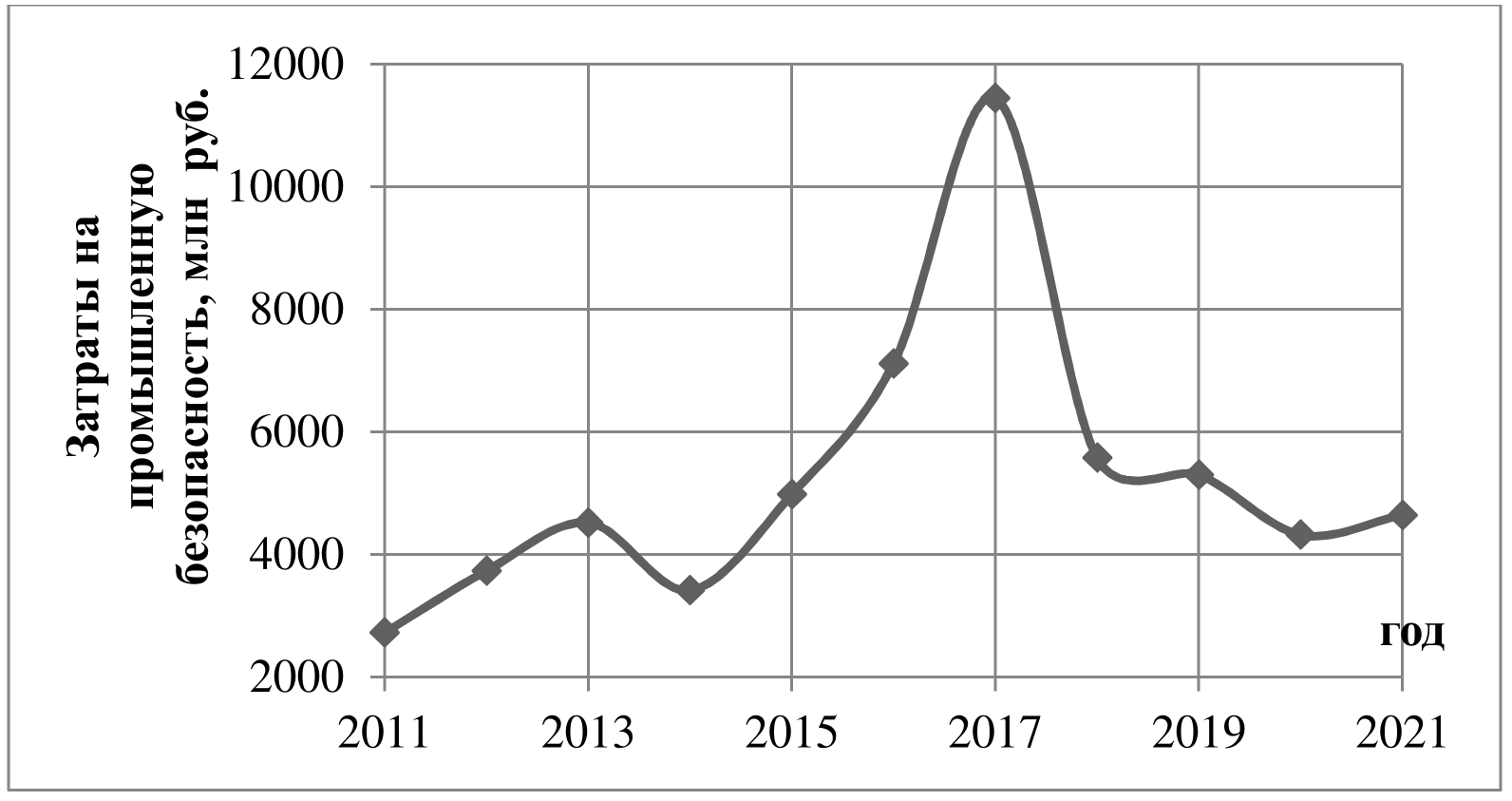 Рисунок 4 – Затраты на промышленную безопасность для ПАО «Газпром»