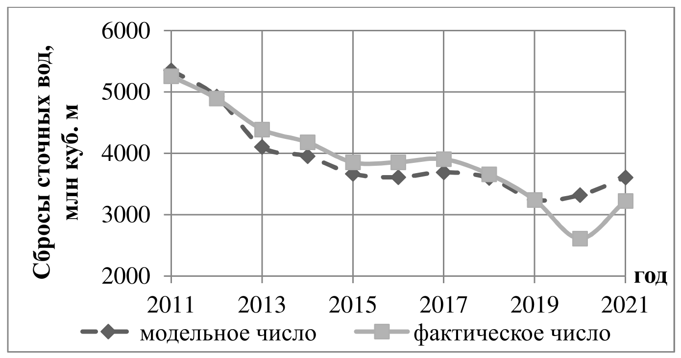 Figure 9 – Model and actual values for wastewater discharge of PJSC «Gazprom»