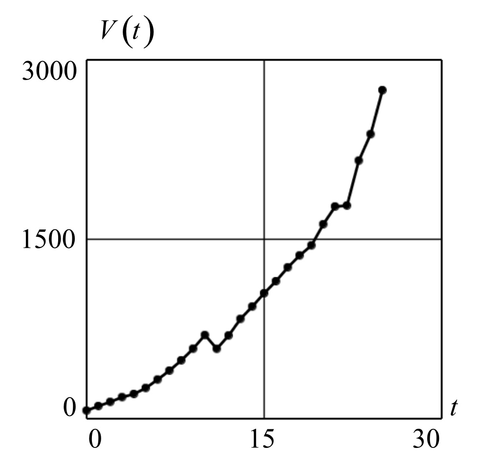 Таким образом, теоретическая кривая динамики развития ВРП может быть записана в виде
