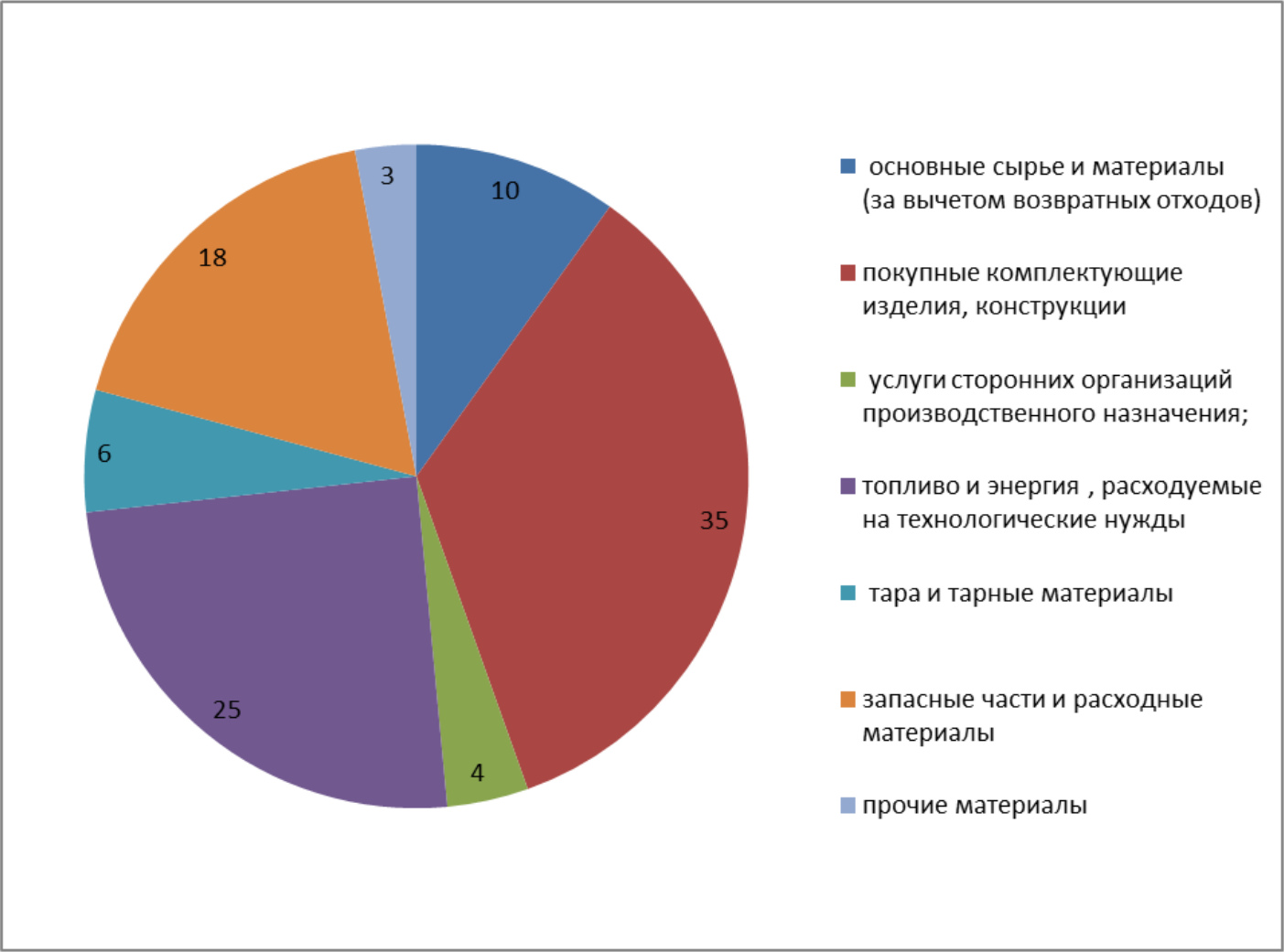 Рис.1: Среднее соотношение в процентах статей материальных издержек в бюджетах исследуемых организаций.