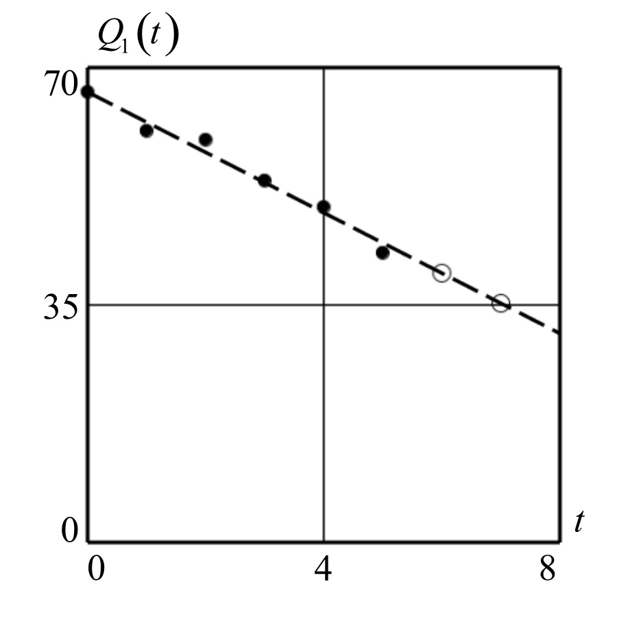 Статистические данные таблицы 1 аппроксимируются линейными функциями времени Q₁(t), Q₂(t), Q₃(t), Q₄(t)