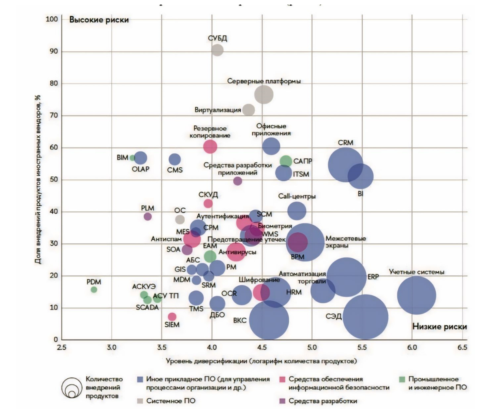 Рисунок 1: Риски зависимости от иностранных вендоров по типам ПО [1]