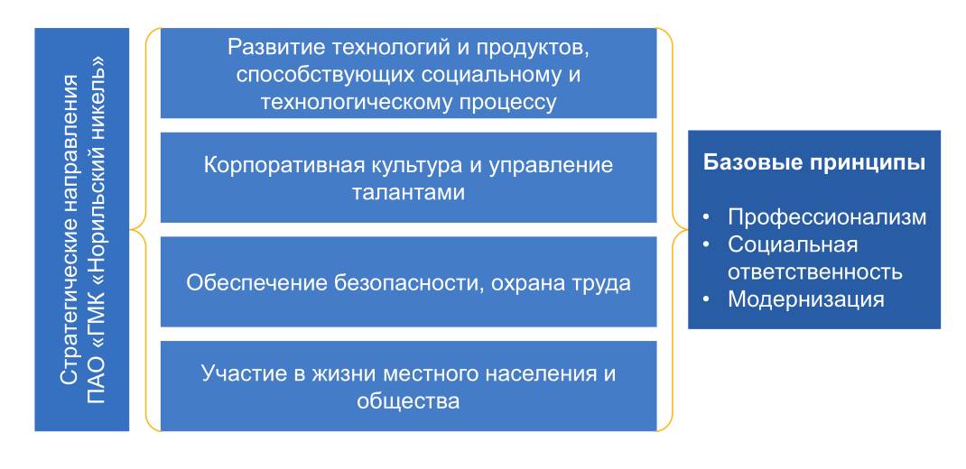 Рис. 2: Стратегические приоритеты ПАО «ГМК «Норильский никель». Источник: [23].