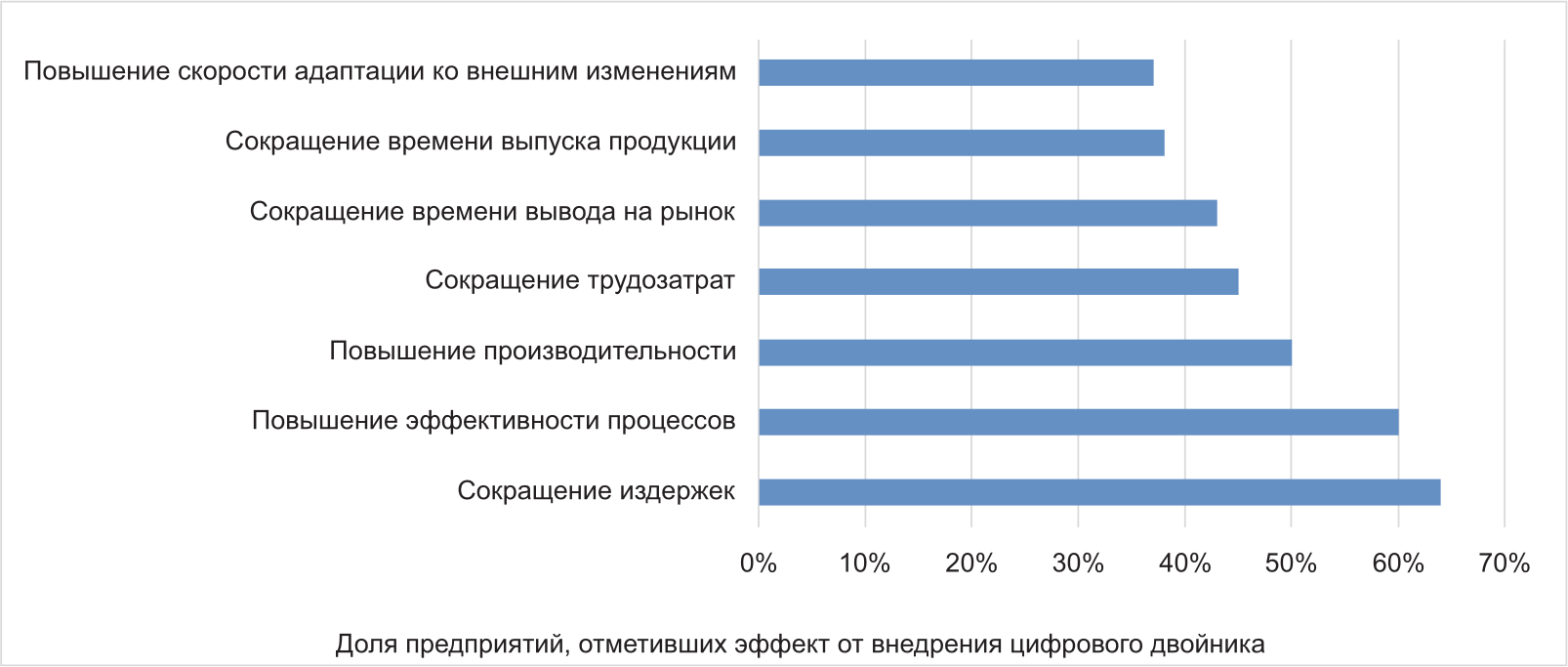 Больше половины исследуемых предприятий отмечают в положительных эффектах сокращение издержек, повышение эффективности процессов и повышение производительности [5–6].