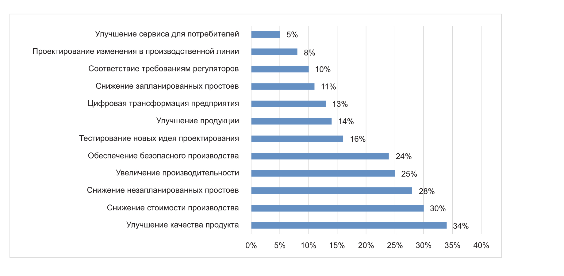 Рис. 4: Факторы, стимулирующие внедрение цифровых двойников в производство.