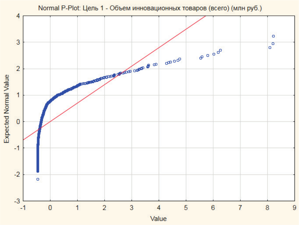 Рис. 2: График кучности данных об объеме инновационных товаров.