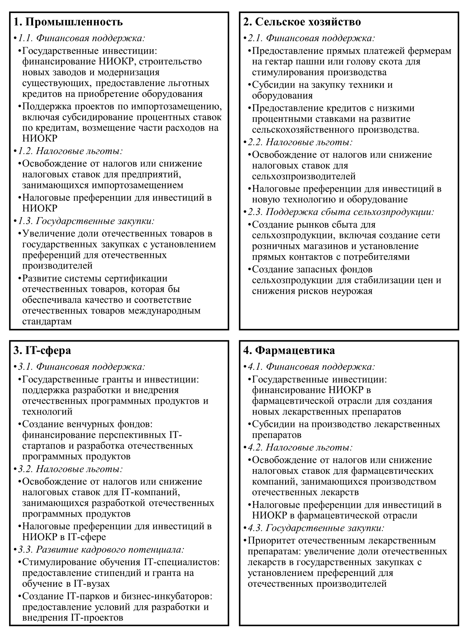 Рис. 6: Меры стимулирования стратегического импортозамещения в отраслях экономики