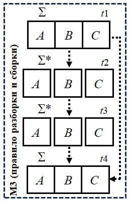 - (М3) объект S выживает при разборке на составляющие его части с последующей их сборкой (правило разборки и сборки).