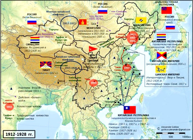Рис. 2. Политическая карта Китая в период Северных милитаристов (1912–1928). (источник)