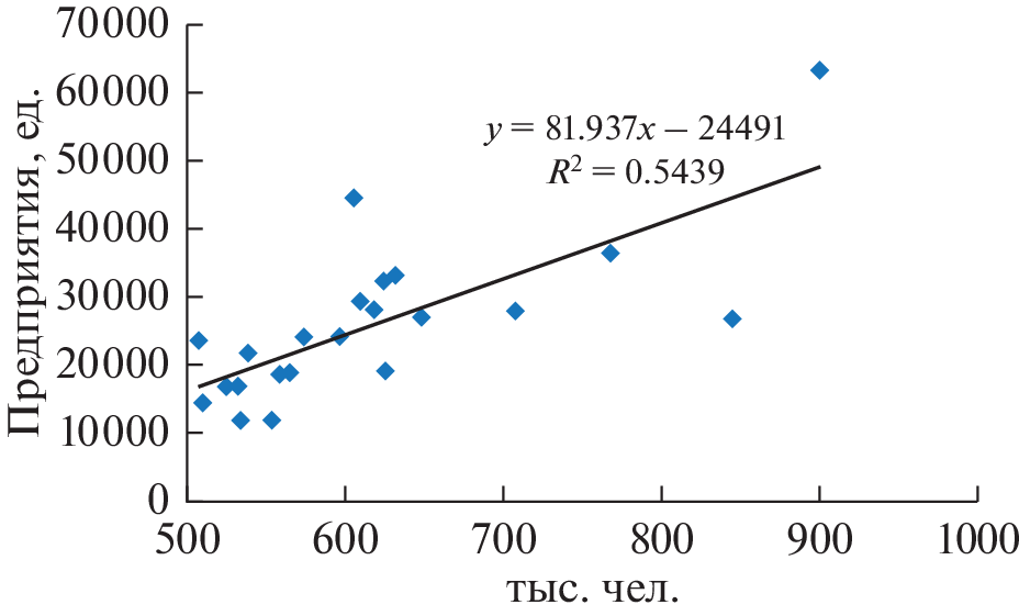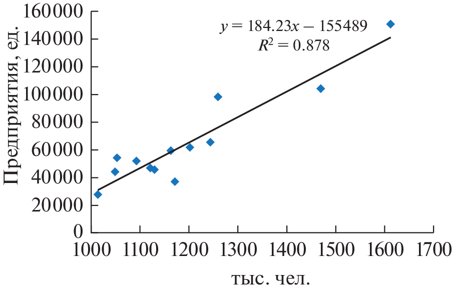 В статье рассматриваются проблемы взаимосвязи агломерационных эффектов локализации и урбанизации. В качестве индикатора этих процессов используются взаимосвязь людности городов с числом предприятий и организаций в них. При этом предполагается, что число предприятий косвенно отражает разнообразие мест приложения труда, хотя и не взвешенное по отраслевой структуре. В результате исследования установлена статистически значимая связь между этими двумя показателями как для субъектов Федерации, так и для городов с численностью более 100 тыс. чел. Основное внимание уделяется изучению и объяснению отклонений от общей закономерности “ранг города/число предприятий в нем”. На этой основе проведена типология городов по нескольким основаниям: административный статус, экономико-географическое положение, наличие крупных градообразующих предприятий. По результатам исследования выявлены конкретные параметрические характеристики, позволяющие выделить монопрофильные города. На примере ключа исследование было продолжено для поселений меньшей людности, в результате установлено, что для них географическое положение и специализация более значимы, чем людность.