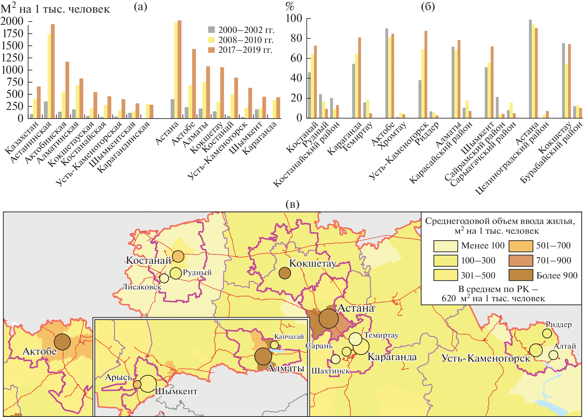 Статья посвящена современному этапу развития агломераций Казахстана, стимулирование формирования которых стало одним из приоритетов государственной политики. Из-за отсутствия критериев границы потенциальных агломераций определены по полуторачасовым изохронам транспортной доступности вокруг городов людностью от 100 тыс. чел. Из этих городов на основе модифицированного коэффициента развитости, учитывающего кроме городских спутников также села людностью свыше 3 тыс. чел., было отобрано восемь центров. На основе ряда социально-экономических индикаторов был проанализирован уровень отрыва ядер агломераций от пригородов и регионов в целом. Пример Казахстана показал, что унаследованная структура экономики и невысокая комфортность среды городов-центров не способствуют развитию большинства агломераций. В течение постсоветского периода их доля в населении республики выросла с 43 до 52%, но административный вариант создания агломераций работает лишь там, где есть объективные предпосылки и эволюционный задел. Из агломераций, статус которых закреплен в правительственных документах в качестве точек роста, к развитым относится агломерация Алматы. Зона тяготения Шымкента включает в основном крупные села, некоторые из которых недавно стали городами. Столичная агломерация Астаны по уровню развитости заметно уступает даже соседней Карагандинской. Актобе способно привлечь жителей лишь северо-западных областей из-за низкой транспортной связности с остальной территорией страны. По показателям социально-экономического развития выделяются столичные агломерации, к которым по степени терциаризации экономики тяготеет третья по величине – Шымкентская. В остальных агломерациях сохраняется повышенная индустриальная занятость, а рост численности населения ввиду невысокой привлекательности происходит за счет естественного прироста и внутриобластной миграции. Кроме Алматы, в окружении которой наблюдаются признаки субурбанизации, города-ядра растут быстрее зон влияния. Пригороды отличает недостаток мест приложения труда, слабость социальной инфраструктуры, более низкий уровень доходов населения. Такая ситуация, характерная для начальных стадий развития, сдерживает использование преимуществ агломераций.