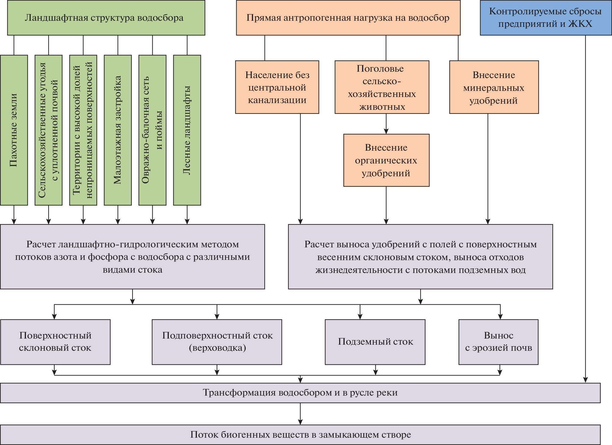 A review of modern ideas about the nature and specifics of diffuse pollution of water bodies is made. The formation, movement, and transformation of water flows formed in watersheds during periods of snowmelt and rainfall saturated with dissolved and suspended substances is a complex multidimensional process distributed over the catchment area. The main factors in the formation of diffuse pollution of water bodies is the interaction of a complex of hydrological and geochemical processes, depending on the climatic features of the territory and the structure of land use in watersheds. The development of the chemical and biological industries has led to the entry into the natural environment of new pollutants alien to the biota, requiring new methods for monitoring and cleaning sources of diffuse and point pollution. In cities, the issue of entry and pollution of water bodies with a wide range of pollutants, including microplastics, is most acute. Suspension microparticles carry a significant proportion of priority pollutants for large cities (surfactants, oil products, heavy metals). It is noted that diffuse pollution of water bodies, which forms on various types of the underlying surface of watersheds, is not registered and is not regulated by any state water management or environmental department. The main reasons for this are the uncertainty of the consumer of diffuse runoff, the complexity of organizing its monitoring, and the incomplete understanding by state water authorities of its key role in pollution of water bodies due to insufficient scientific knowledge of the problem in Russia. The necessity of developing a modern scientifically substantiated network for monitoring diffuse runoff is noted. A review of modern models developed both in Russia and abroad, used to calculate the release of pollutants into water bodies using GIS technologies and advanced databases, is made. In a number of cases, an imbalance was noted in the degree of development of blocks describing the transfer of water, sediment and chemicals. Examples of the work of the Institute of Geography of the Russian Academy of Sciences in the modeling of diffuse pollution in the basin of the Cheboksary reservoir under the program “Improvement of the Volga” are given.