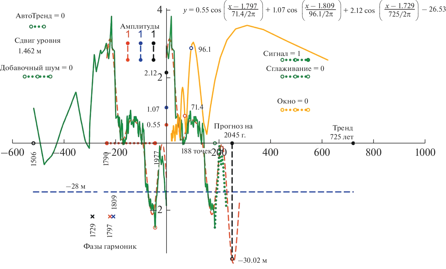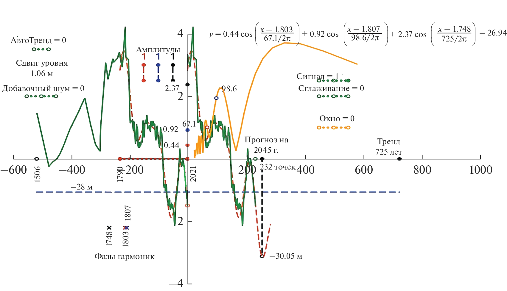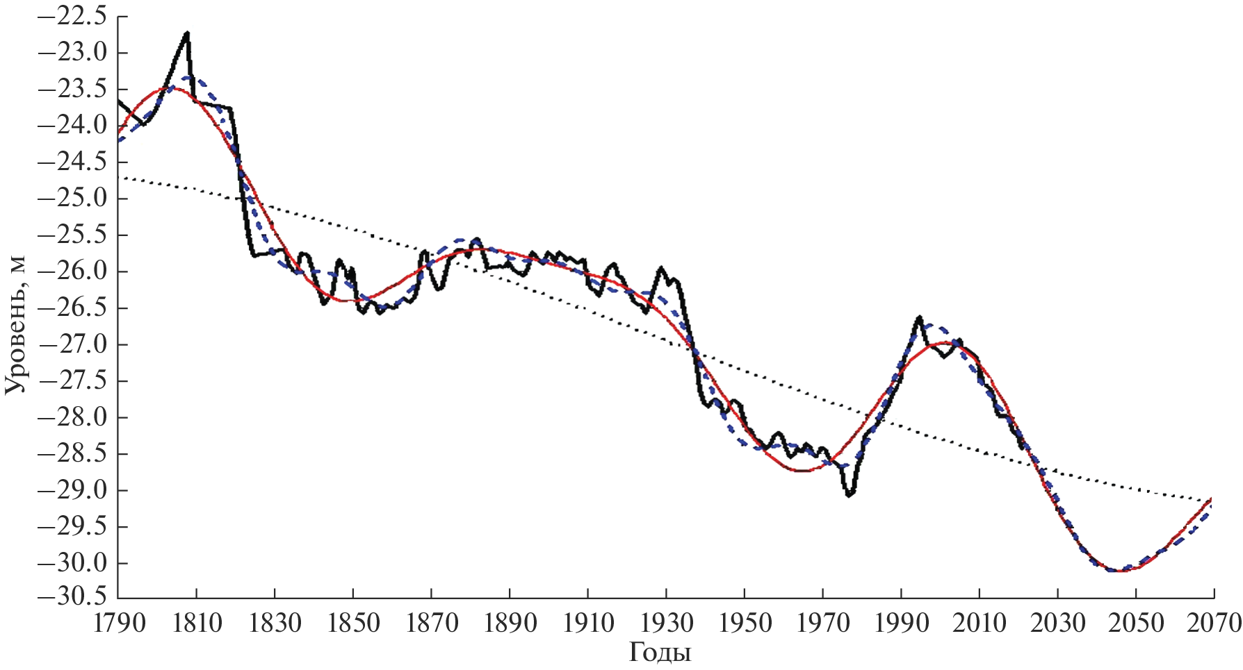 Various approaches to the study and forecast of long-term changes in the average annual level of the Caspian Sea are considered. Within the framework of the most common methods, it is considered that such estimates are possible only in a probabilistic sense since the main components of the seawater balance behave randomly. However, for the majority of consumers, a specifically designated perspective of a level change and a justification for the answer to the question are important: if there is another significant change, then how long and to what extreme value does it continue? With the accumulation of data on the dynamics of the atmosphere and ocean parameters, including the results of space monitoring, there are more and more reports on the identification of multidecadal recurrence in their time series. Over the past years, attempts have been repeatedly made, based on the study of sea level dynamics, to identify cyclical components within its time series in order to use them both to describe sharp declines and rises that occurred earlier and to predict similar changes in the future. Data analysis in this case consists of searching for such periods of variability within which the requirements of limited periodic composition and stability of the components that form the time series would be met. With the help of a specially created software environment, a study of a series consisting of historical and modern data on observations of the level of the Caspian Sea over the past 230 years was carried out in order to identify stable periodicities and build an approximating polynomial with their help. It is shown that in this time interval, in addition to the centuries-old trend, there are two clearly expressed quasi-cyclical components. The approximation made using them well describes the entire previous dynamics of the level up to 2021 and can be used as a basis for constructing forecast estimates.