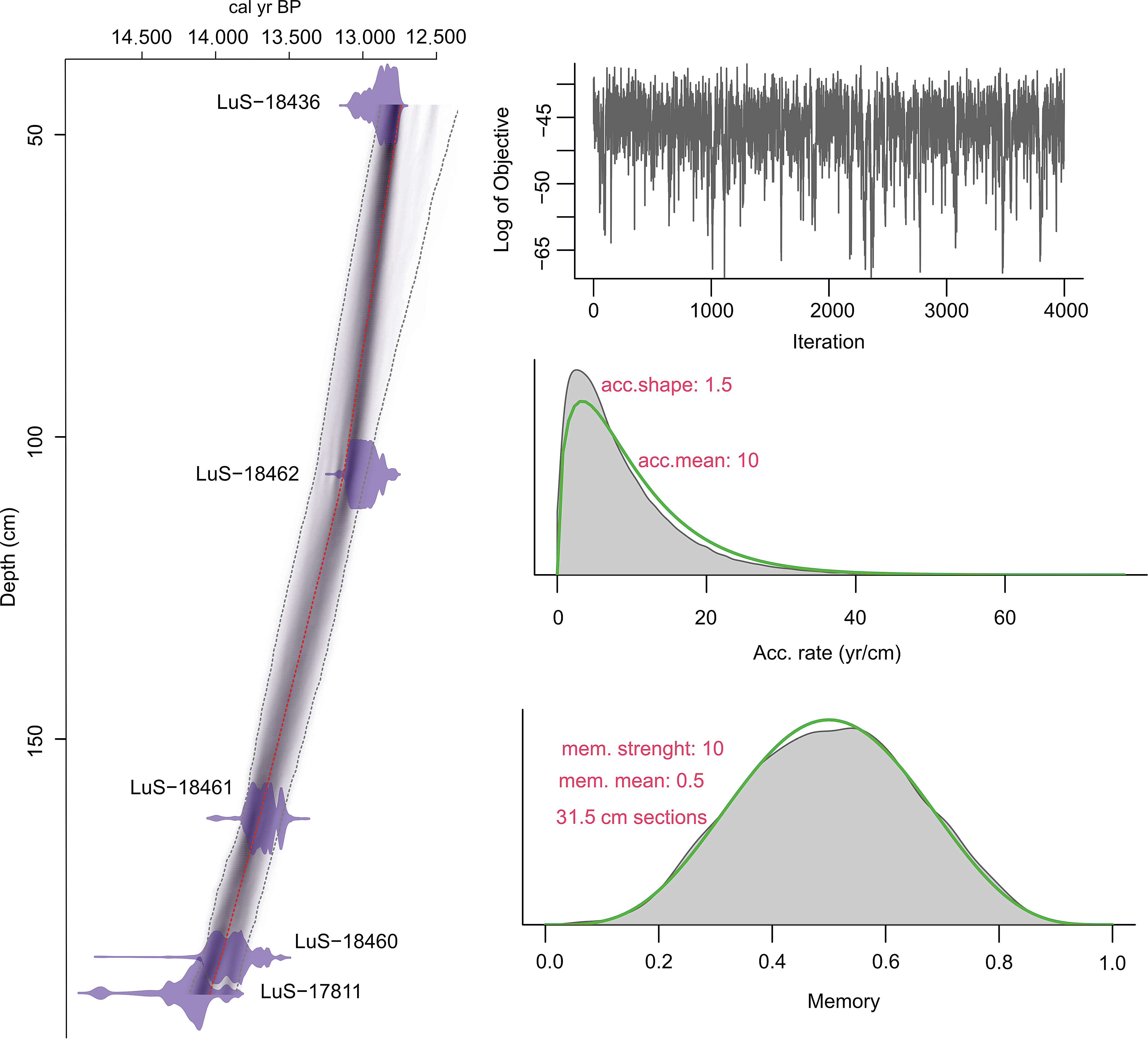 - Blaauw M., Christen J.A. Flexible paleoclimate age-depth models using an autoregressive gamma process. Bayesian Anal., 2011, vol. 6, no. 3, pp. 457–474. https://doi.org/10.1214/11-BA618