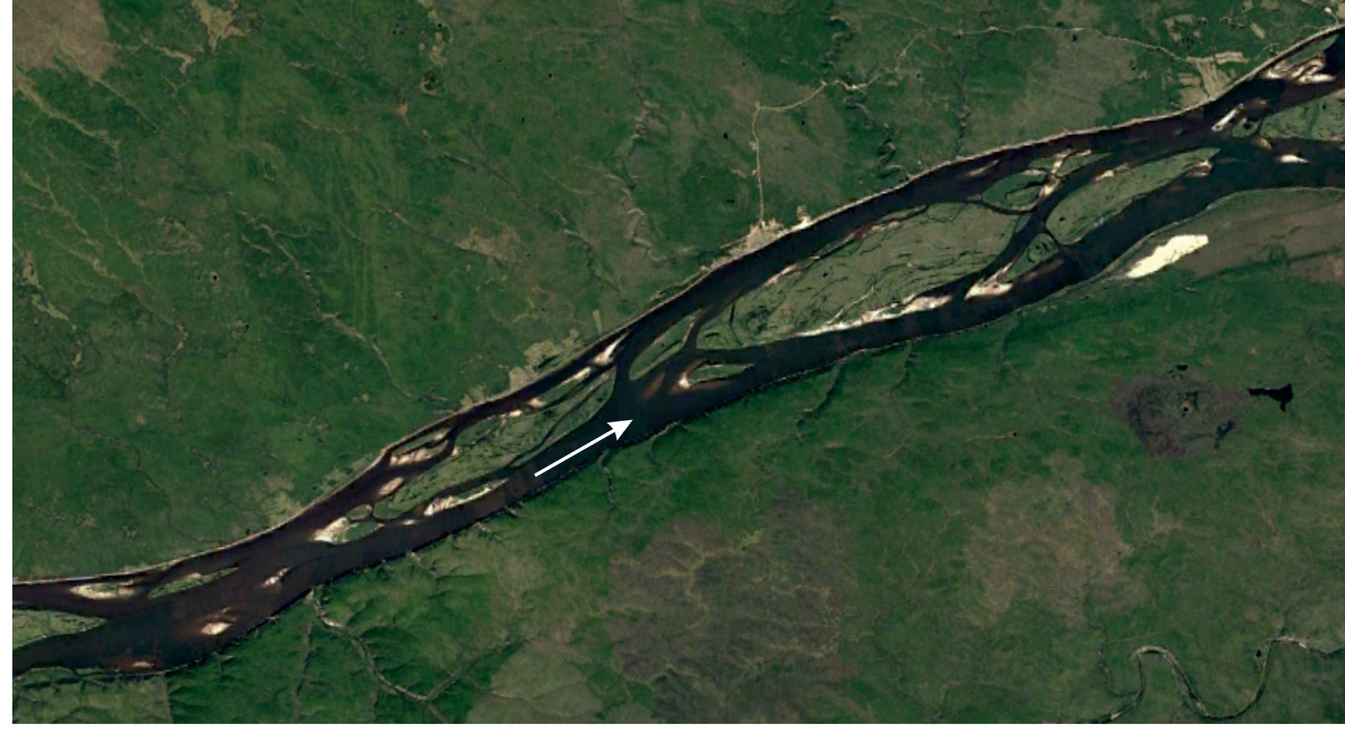 Рис. 3. Параллельно-рукавное врезанное русло средней Лены с прямолинейными рукавами (космический снимок).