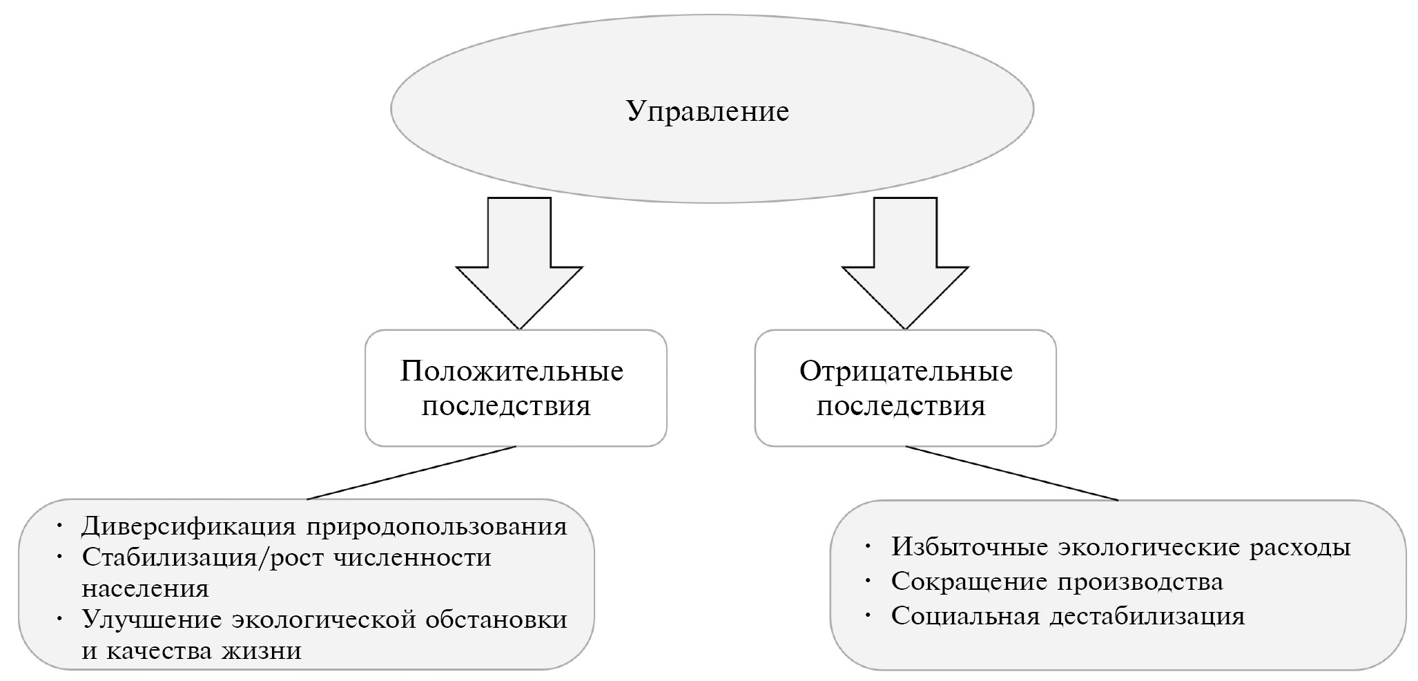 Рис. 8. Возможные последствия управленческих решений для гармонизации циклов развития социоприродной системы