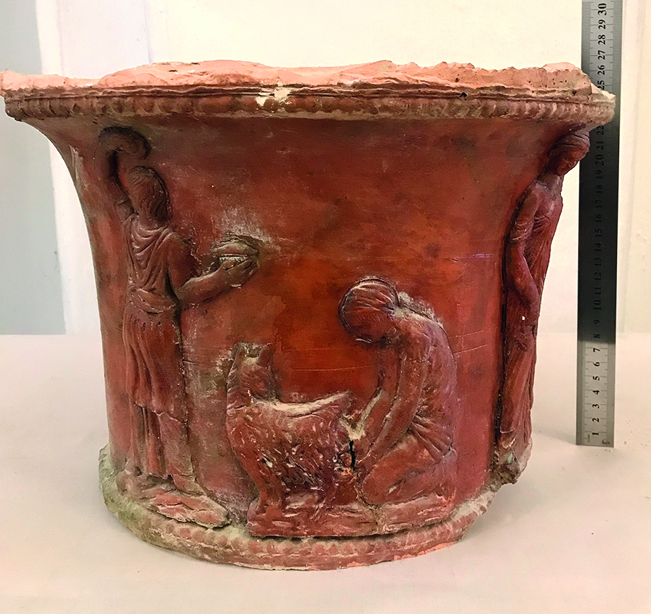 Ил. 4. Фрагмент рельефного керамического сосуда с буколической сценой из «Музея архимандрита Антонина». Фото 2018 г. Считавшийся позднеантичным сосуд определён как подделка XIX в. Фото О.М. Ворошиловой [22]