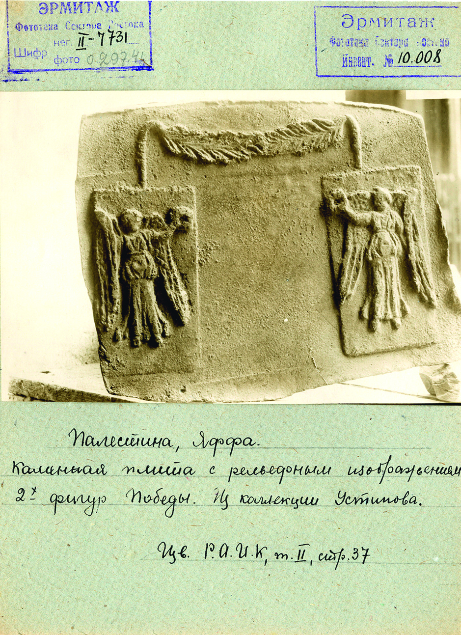- Belyaev L.A. Rel'efnaya plastinka s figurami bogini Pobedy iz kollektsii Platona Ustinova i svintsovye sarkofagi Ierusalima III–V vekov // KSIA. 2023. T. 273. S. 360–371 (in Russian).