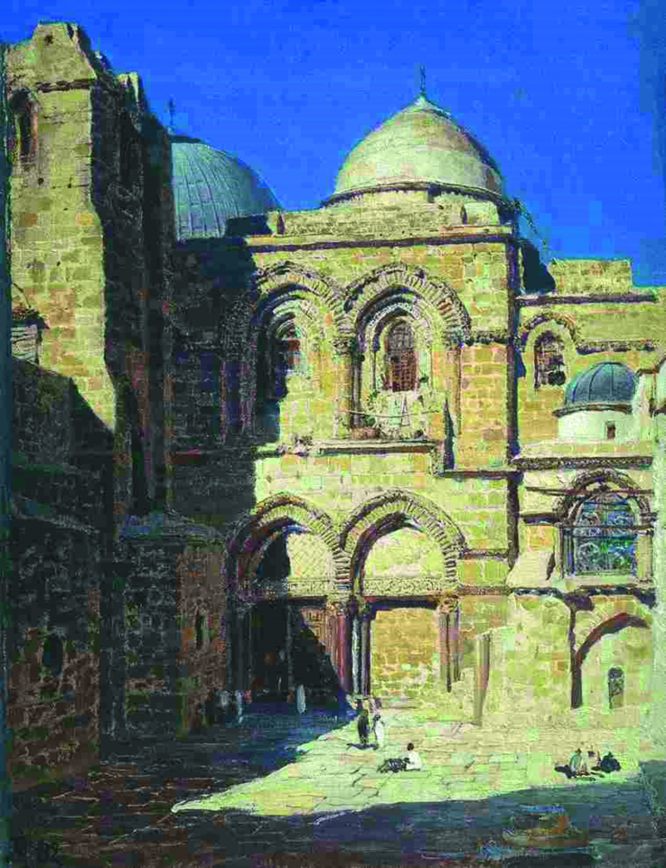 Илья Ефимович Репин посетил Иерусалим в июне–июле 1898 г. (ил. 12). Он желал проникнуться духом Святой Земли перед тем, как начать работу над главным шедевром своей жизни — картиной «Искушение Христа в пустыне». Сам он так отзывался о своём пребывании в Палестине: