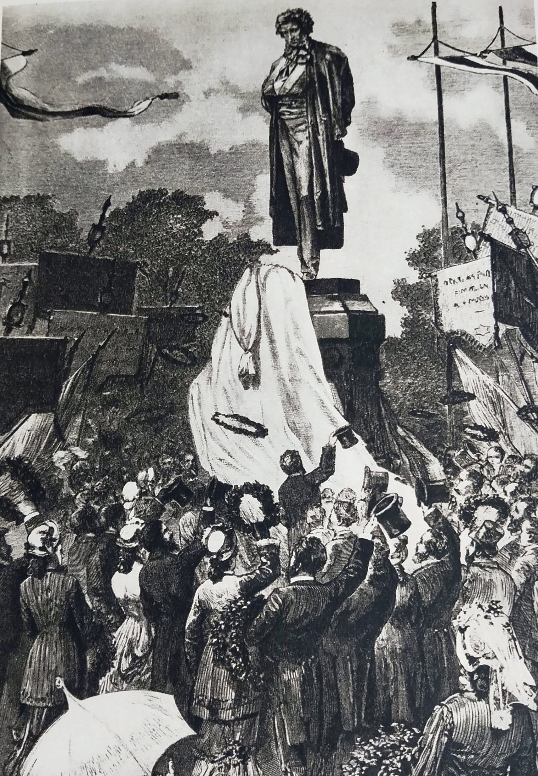 2. Fig. 1. Opening of the monument to Pushkin in Moscow. 1880. Engraving from a sketch by Nikolai Chekhov