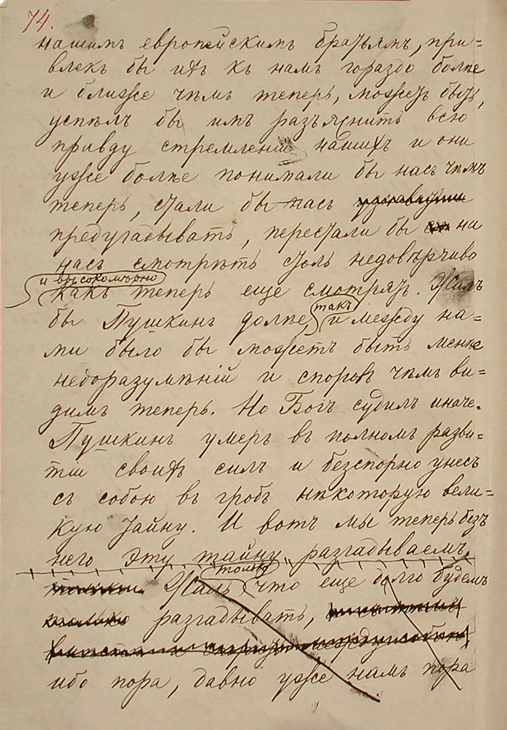 Ил. 2. Последняя страница Пушкинской речи Ф.М. Достоевского. Автограф. РГБ. Ф. 93. I. 2. 15. Л. 39 об.