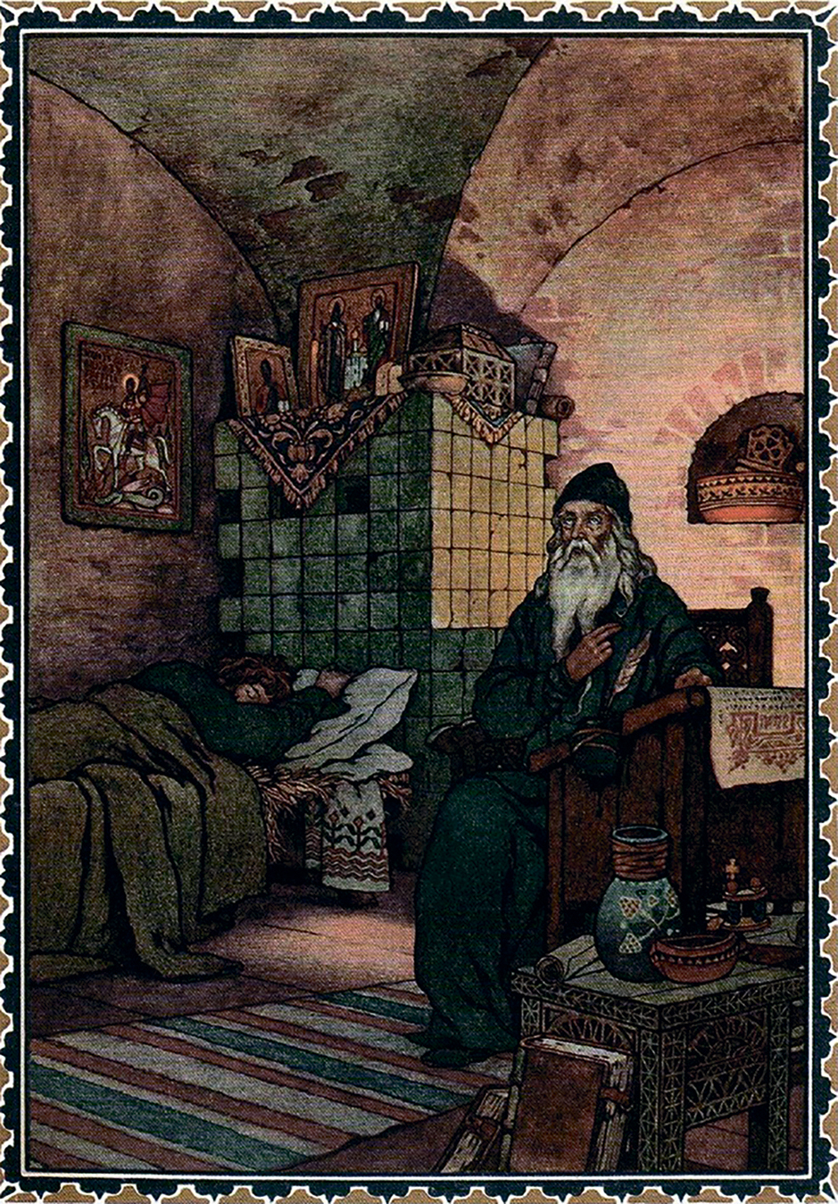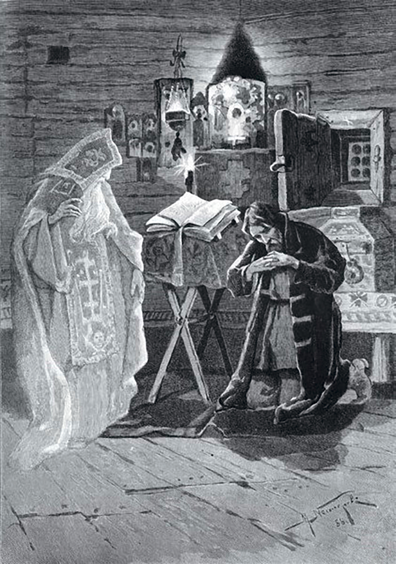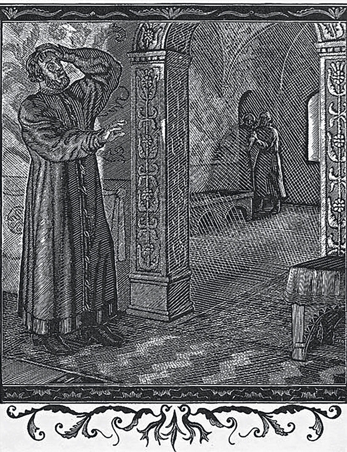 Ил. 2. Б.В. Зворыкин. Иллюстрация к драме А.С. Пушкина «Борис Годунов». Келья в Чудовом монастыре (1927)