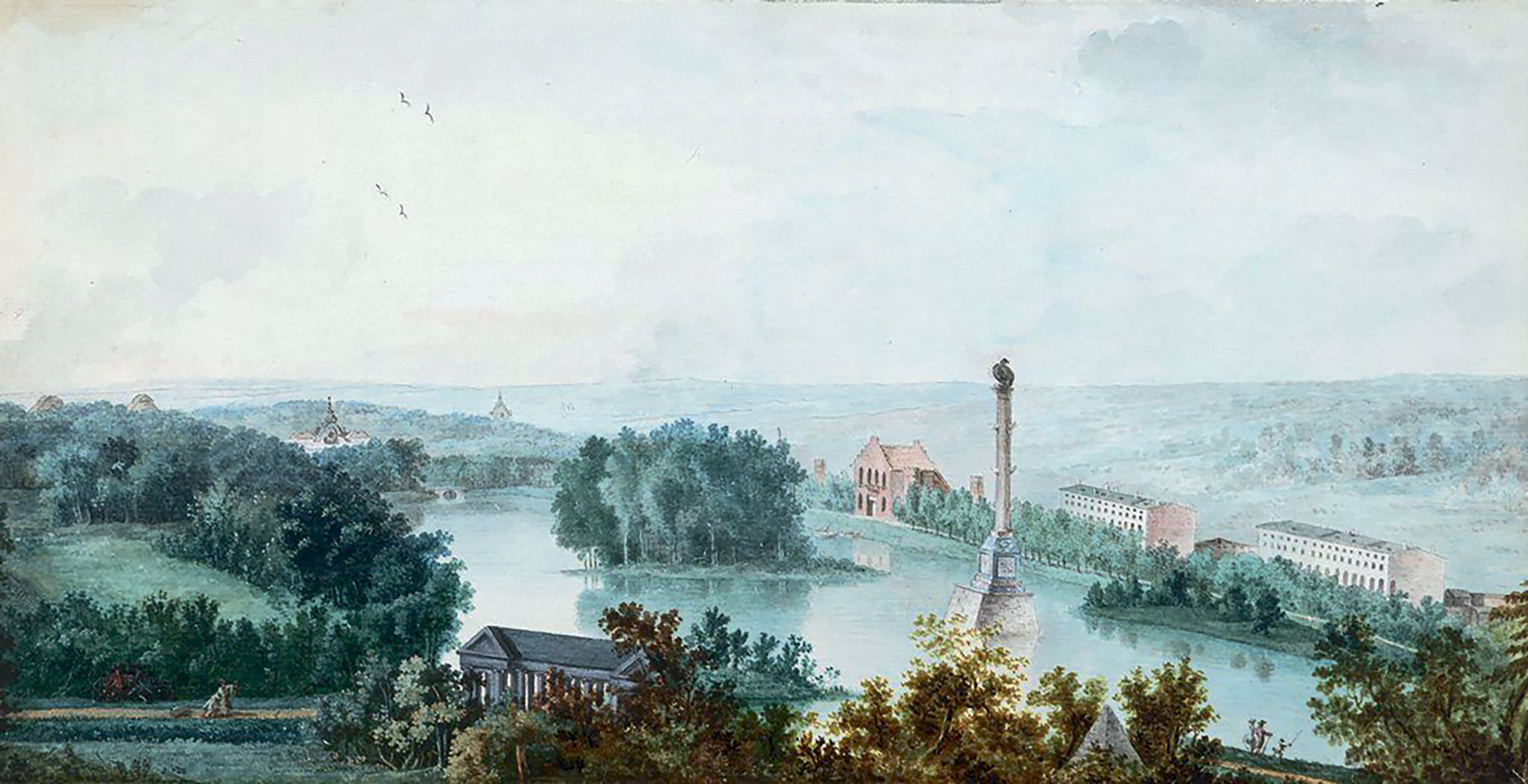 Ил. 2. Ж.Б. де ла Траверс. Царское Село. Вид на Чесменскую колонну. 1780-е