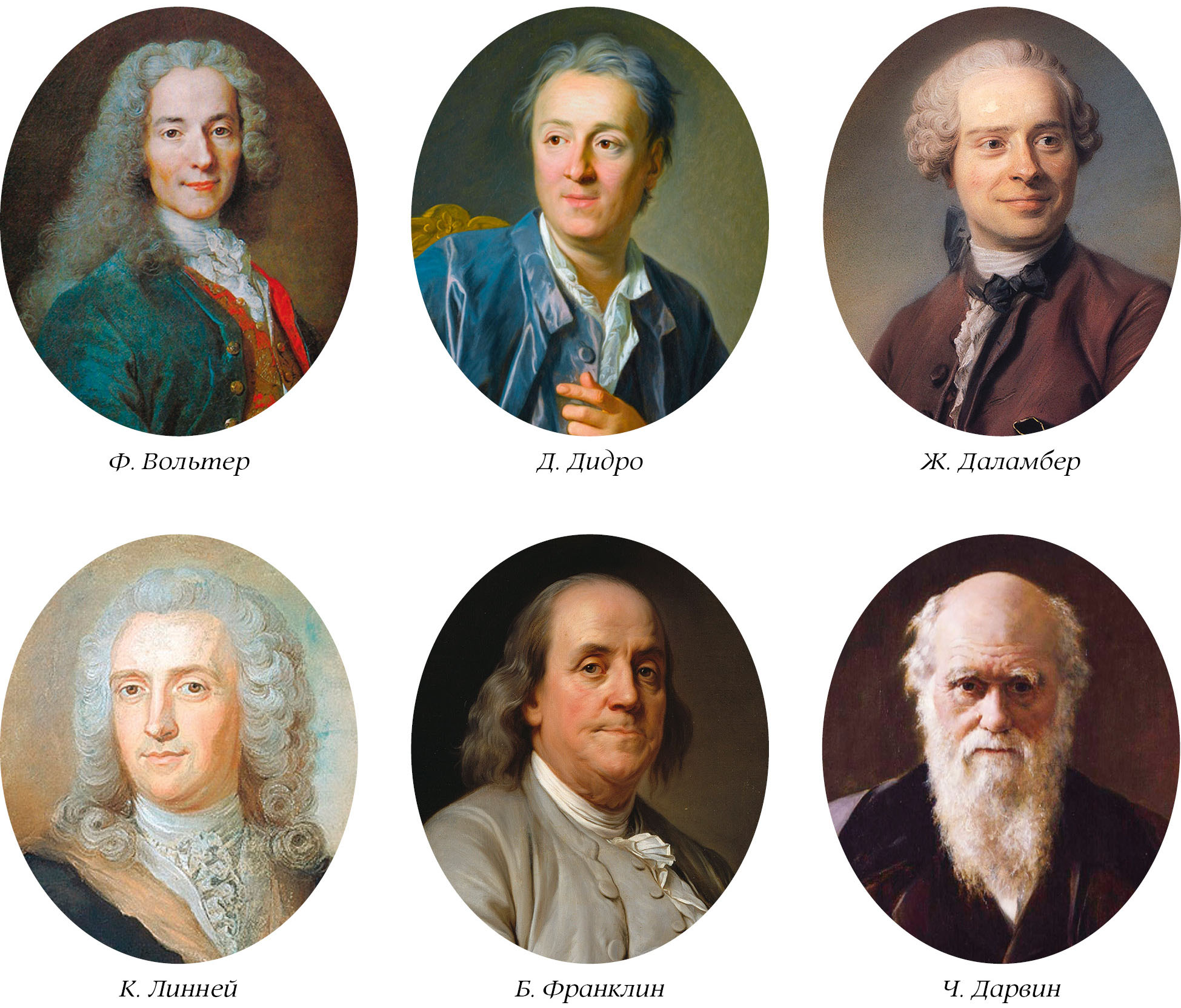 В XVIII в. почётными членами и членами-корреспондентами стали более 160 иностранных учёных (Ф. Вольтер, Д. Дидро, Ж. Даламбер, К. Линней, Б. Франклин и другие) (ил. 5). В свою очередь, почётными членами зарубежных академий стали Л. Эйлер, М.В. Ломоносов, И.И. Лепёхин, С.Я. Румовский, П.С. Паллас.