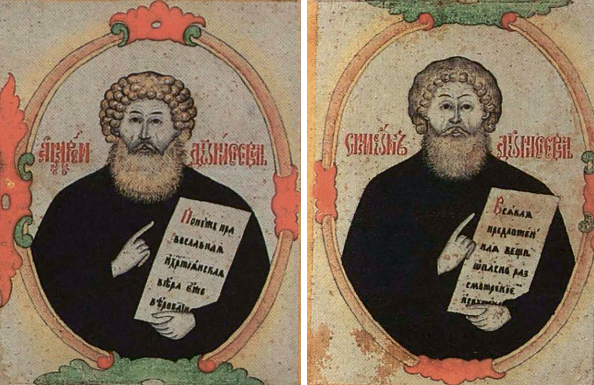 Ил. 3. Поморские писатели Андрей и Семён Денисовы (выговский лубок)