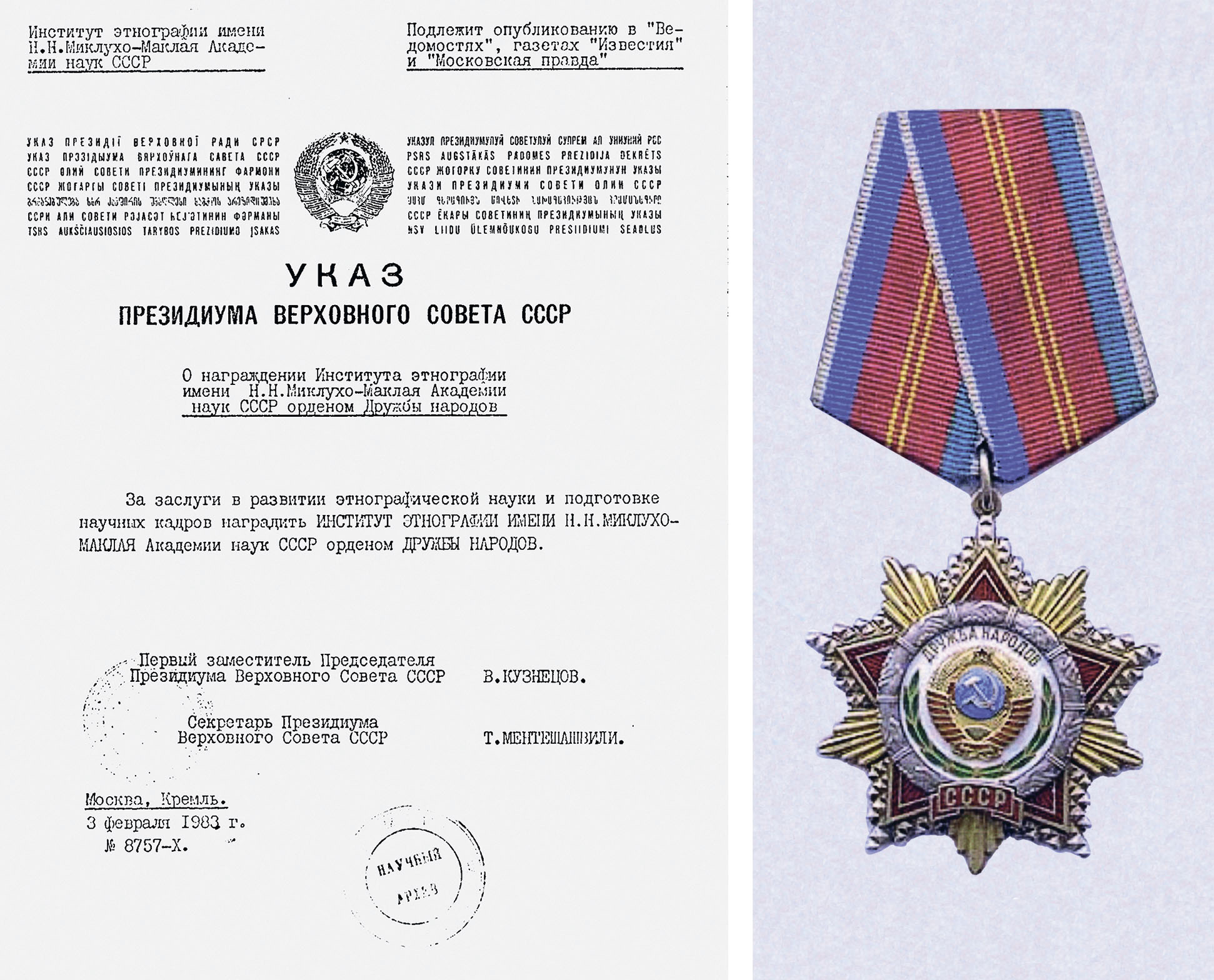 Ил. 12–13. 3 февраля 1983 г. Институт этнографии АН СССР награждён орденом Дружбы народов