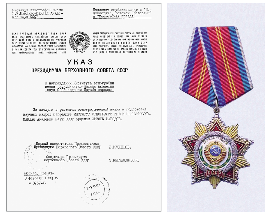 Ил. 12-13. 3 февраля 1983 г. Институт этнографии АН СССР награждён орденом Дружбы народов