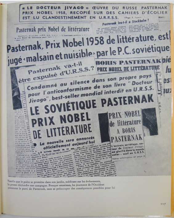 Ил. 9. Коллаж из французских отзывов о присуждении Б. Пастернаку Нобелевской премии. Страница из книги Герда Руге «Пастернак» в переводе на французский язык. Paris: Hachette, 1959
