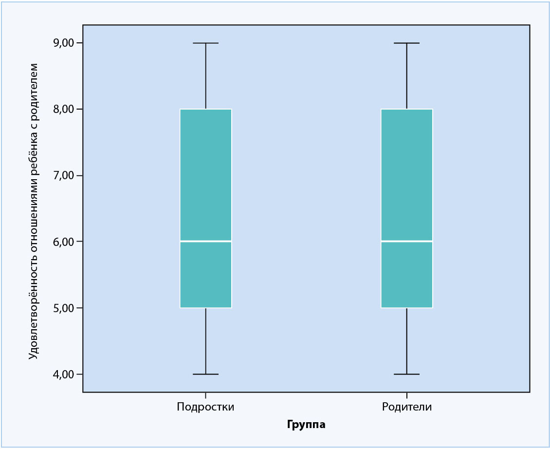 Наиболее важным результатом исследования является установление отсутствия различий между исследуемыми группами по параметру «Эмоциональная дистанция — эмоциональная близость ребёнка к родителю» (F = 12,8; p = 0,761) (рис. 1). В реальности родители и их дети-подростки воспринимают ДРО как эмоционально дистантные, где подросткам практически невозможно делиться самым сокровенным и важным с родителем. Это связано с тем, что родитель не делится сам, что является сигналом для подростка об отсутствии доверительных отношений со взрослым.