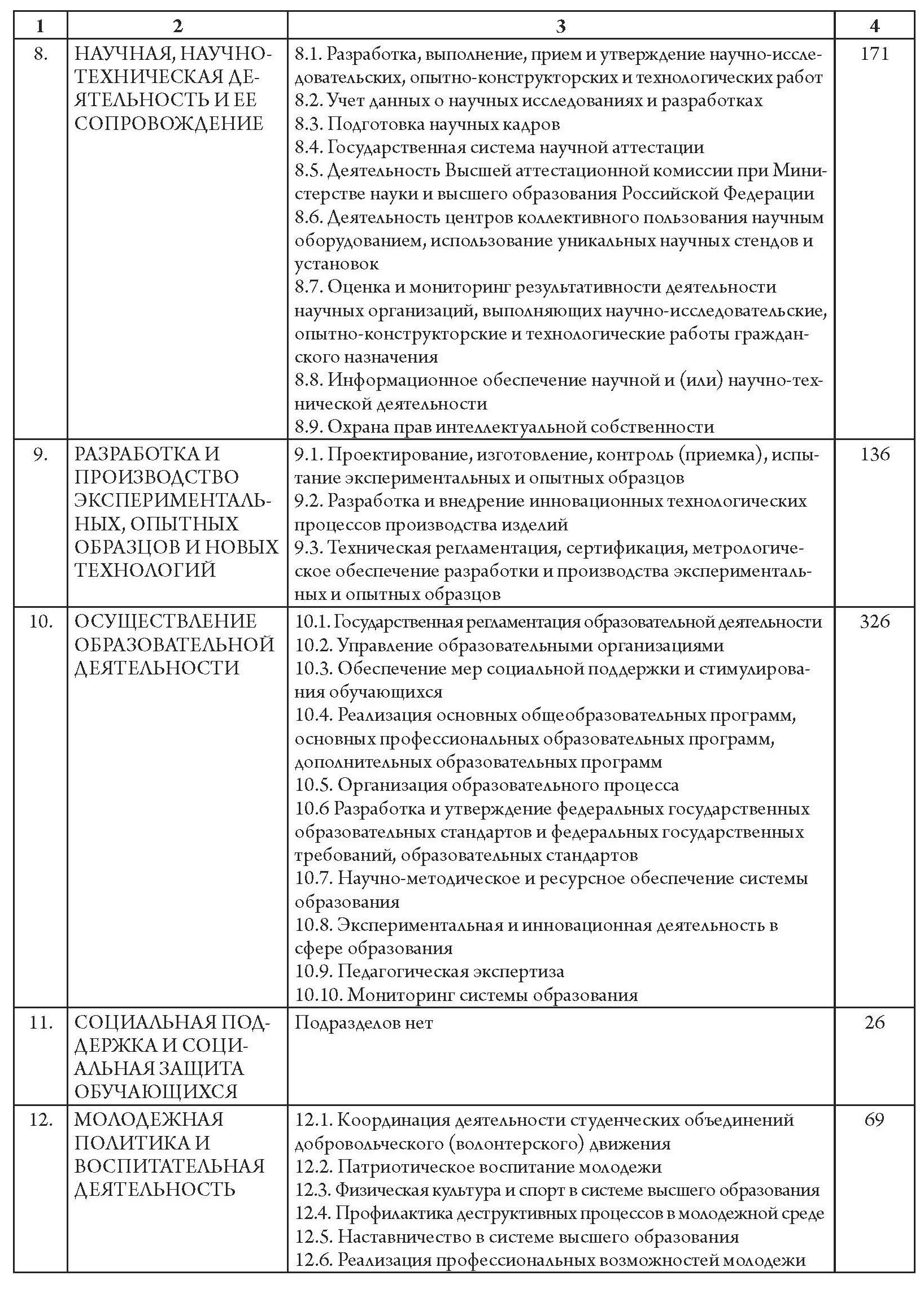 Анализ изучения системы подведомственных Минобрнауки России организаций позволил создать пятизвенную структуру перечня (табл. 1).