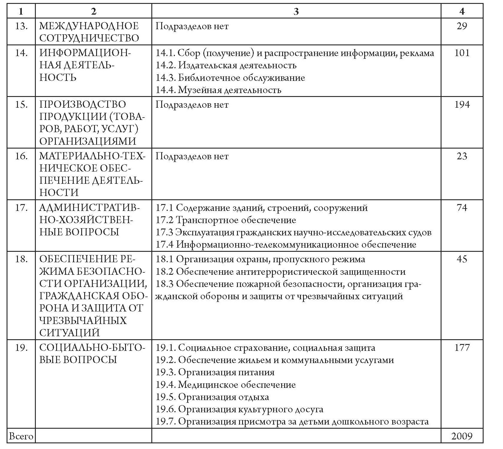 Перечень содержит 19 разделов, отражающих как общие вопросы, так и специфику деятельности (табл. 2). Большинство разделов разделено на подразделы, их общее количество – 74. Дополнительно один из подразделов (1.3) содержит три рубрики. Всего утвержденный Перечень Минобрнауки России содержит 2 009 документов.