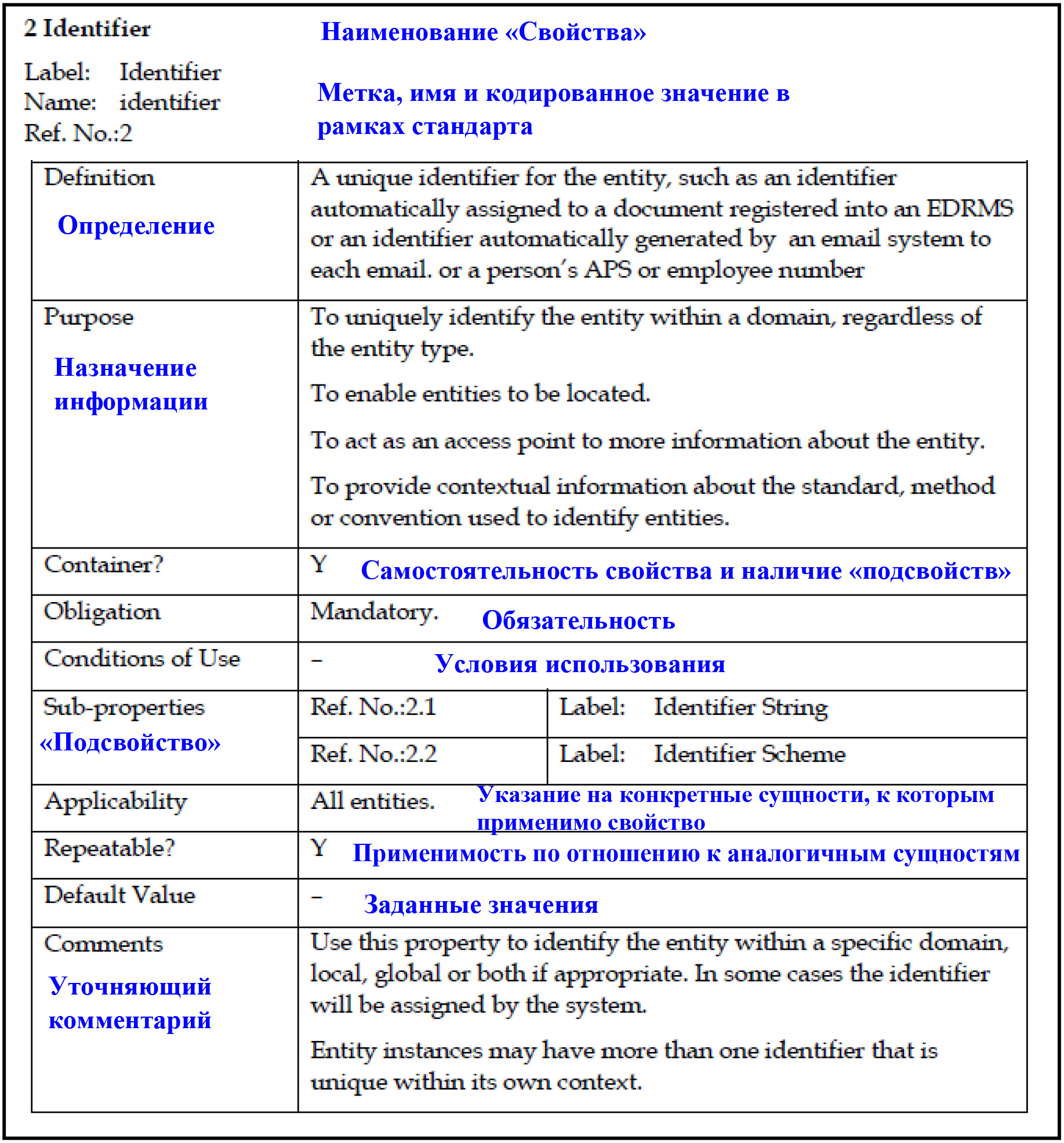Рисунок 1. Пример описания элемента метаданных (свойства) из Стандарта делопроизводственных метаданных австралийского правительства (Австралия)