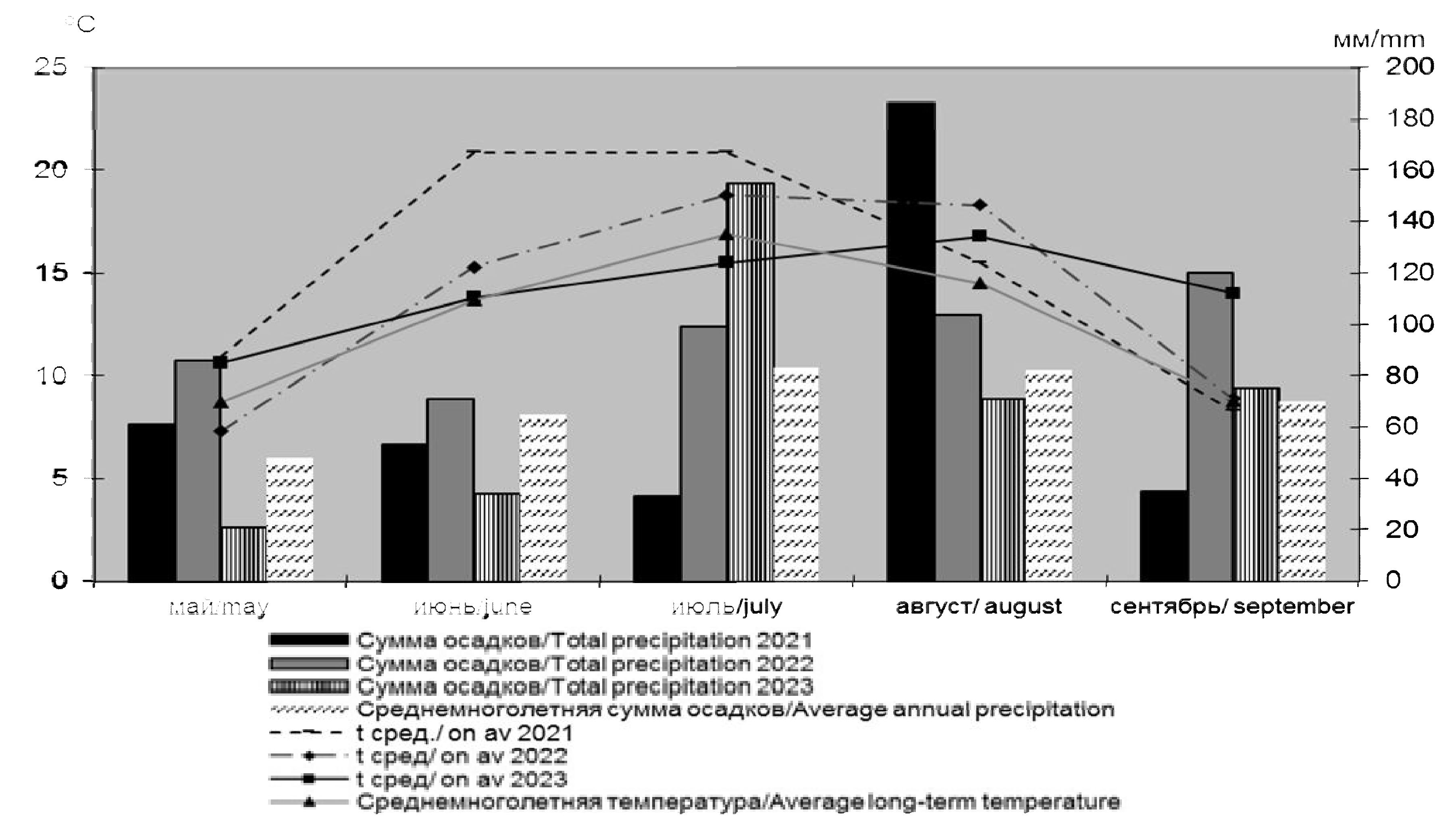 Рисунок 1. Метеорологические условия в годы исследований 2021-2023 гг.