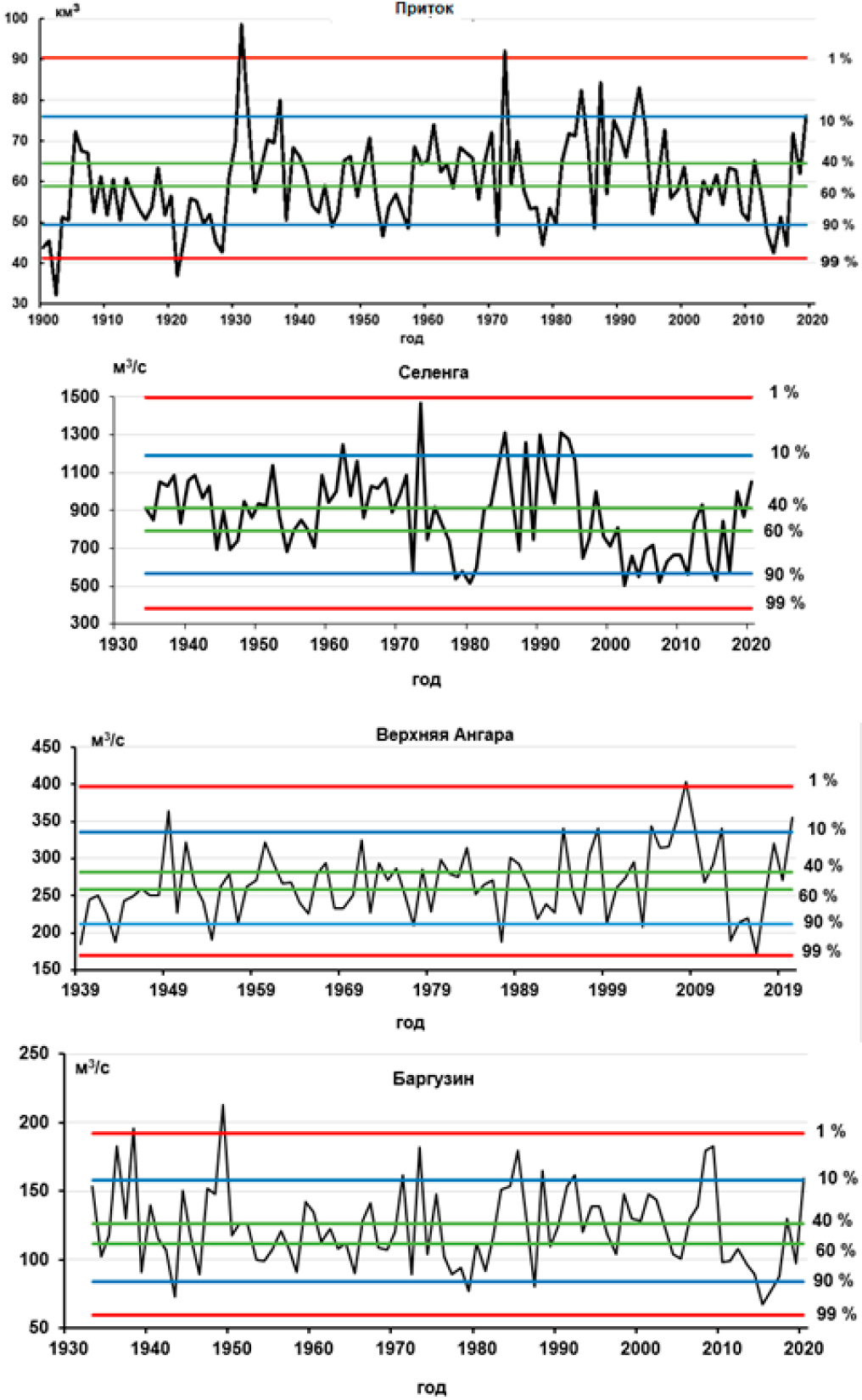 Indicators of high and low inflow to Lake Baikal and the runoff of its main rivers
