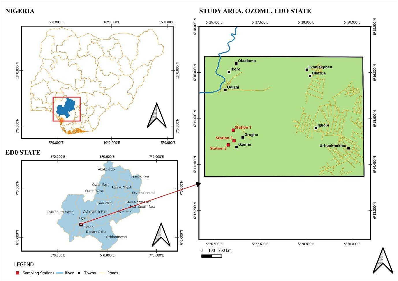For sampling purposes, three locations were chosen based on their accessibility and water availability. These stations provide valuable insights into the ecological dynamics of Ozomu Lake and help assess the impact of human activities and natural variations on its biodiversity and water quality.