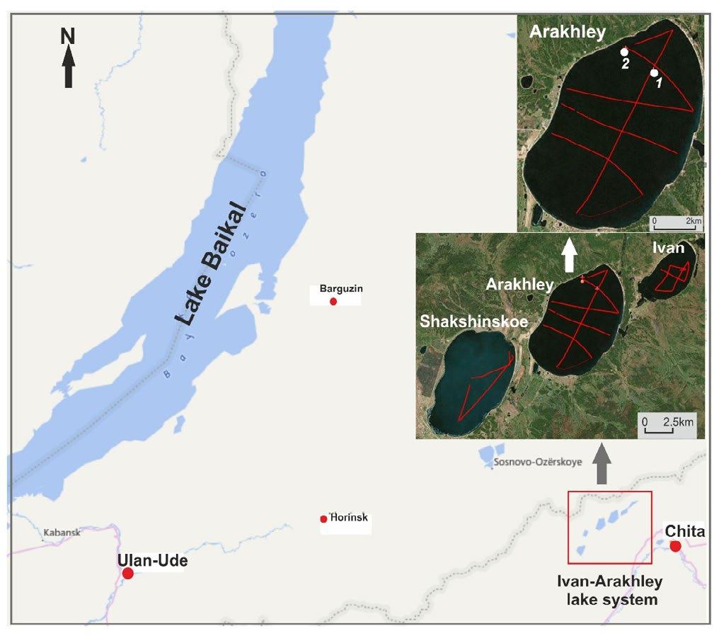 In present, there still is gap about structures of sediments cover of small lakes from Transbaikalia. Lake Arakhlei belongs to the Ivan-Arakhley lake system (6 lakes), an is located on 955 m a.s.l. This area is 59 km2, and 11x6.7 km in size. The lake is the largest freshwater body of Transbaikalia, however, knowledge about its limnology evolution is still rare. In our study, based on the analysis of high-resolution seismic data on the sedimentary infill of three lakes from the Ivan-Arakhley lake system, we attempt to reconstruct the evolution of the lakes as regional climate and geology proxy the Late Pleistocene-Holocene.