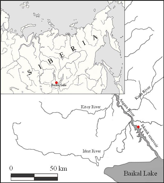 The catching site (52°12’37’’N, 104°25’28’’E) is located in the Irkutsk Reservoir at the Angara River (Fig. 2). The fishes were caught with hooks at the depth of 2-3 m in July-August, 2019.