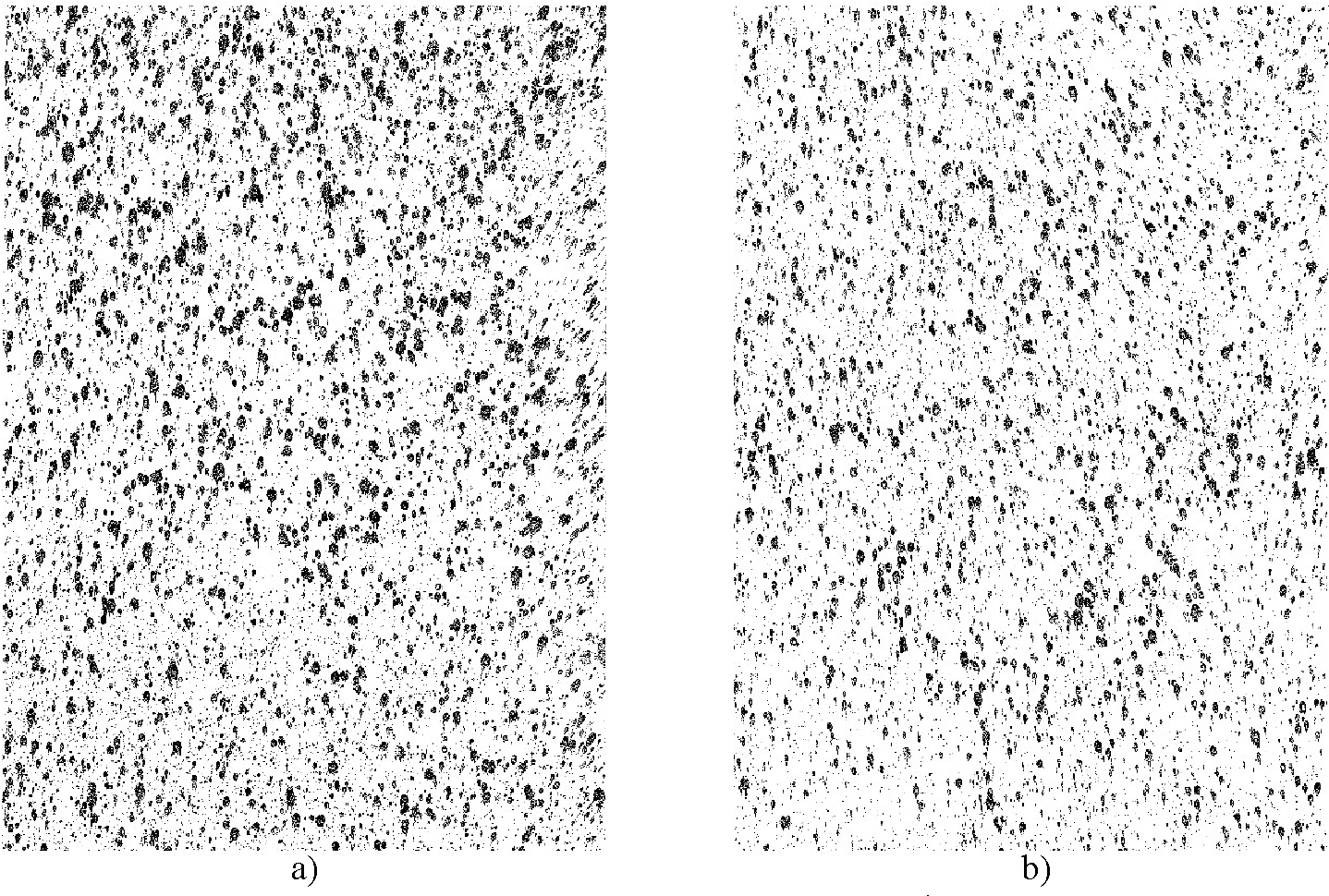 Рис. 3. Следы капель с набегающей (а) и тыльной (b) сторон макета