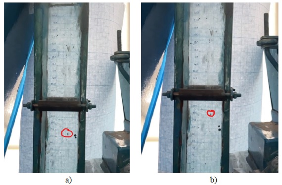 Рис. 3. Определение скорости витания: a) первая точка измерения; b) вторая точка измерения