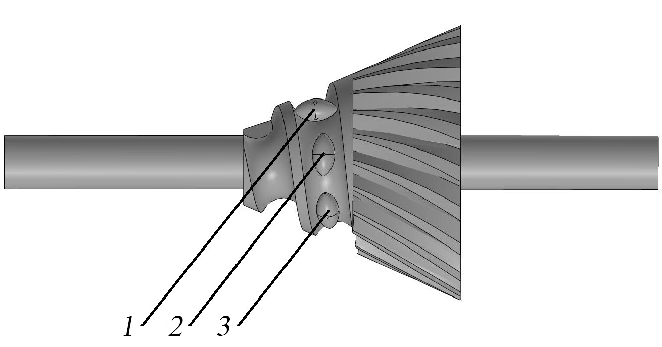 Анализ результатов показал значительное сокращение времени, необходимого для размола одной партии зерна ячменя, при внешнем колебательном воздействии. Например, для партии массой 0,03 кг в режиме без внешнего колебательного воздействия время размола уменьшилось с 67 до 51 с. при включенном вибромоторе, что соответствует снижению времени, необходимого для размола одной партии зерна ячменя на 23,89 %. Такая динамика объясняется улучшением условий подачи зерна ячменя в зону размола, вызванным воздействием внешних колебаний. Под влиянием резонансных колебаний зерно лучше ориентируется в пространстве, уменьшается вероятность формирования пробок или задержек в загрузочном бункере и шнеке. Это обеспечивает более стабильный и равномерный поток материала к жерновам. Пример оптимальной ориентации зерна ячменя, полученной в результате эксперимента, показан на рисунке 9 (зерна ячменя ориентированы параллельно направлению движения по подающему шнеку).